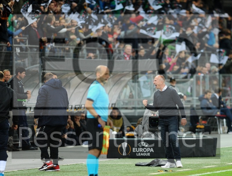 jubel gerhard struber (wolfsberger ac/rz pellets wac gegen as roma) uefa europa league 2019/2010, gruppenphase, spiel 2