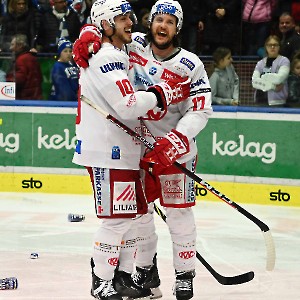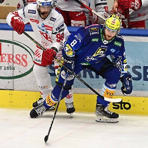 derek joslin mit sebastian dahm (EC idm wärmepumpen VSV gegen ec kac) win2day ICE Hockey League - 2022/2023, Eishockey Österreich, playoffs, viertelfinale, kärntner derby, spiel 5