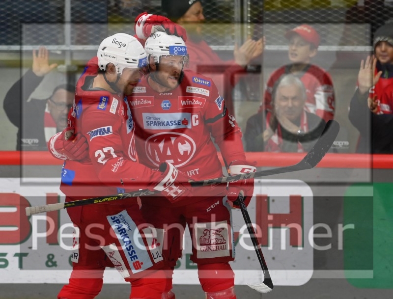 postma mit thomas hundertpfund ( ec-kac gegen ec red bull salzburg) ice hockey saison 2022/2023, eishockey österreich, heidi horten arena, playoffs, game 2, halbfinale
